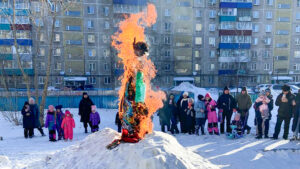 Сожжением Зимы в Силинском парке закончилось празднование Масленицы в Комсомольске
