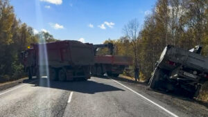 На хабаровской трассе в районе поворота на село Даппы Комсомольского района водитель большегруза съехал в кювет. В настоящее время движение […]