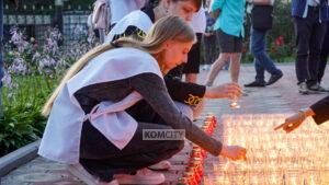 Слово «Помним» из свечей выложила молодёжь на памятной акции