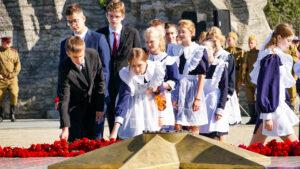 В память об окончании Второй мировой войны к стеле на Победе возложили цветы