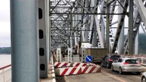 Из-за застрявшего на Амурском мосту большегруза движение было остановлено на два часа