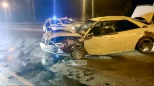 Марк-2 влетел в бетонные блоки на закрытом участке Силинского моста