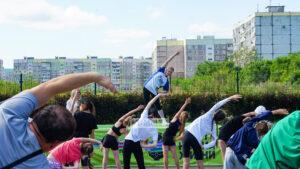 Зарядку для всех желающих провела гимнастка-чемпионка Виктория Амелькова