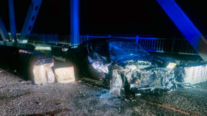 На мосту через Амур Спринтер влетел в бетонные ограждения — водитель пострадал