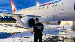 В Санкт-Петербурге у Суперджета после посадки загорелся двигатель