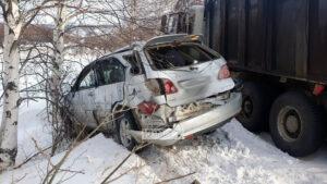 На Амурском шоссе Хариэр бросился под самосвал, водитель пострадал