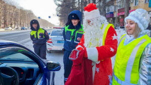 Мороз-ГИБДДшник поздравил комсомольских водителей с наступающим Новым годом