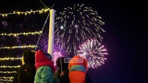 На открытии новогоднего городка на ДК Авиастроителей зажгли ёлку и запустили четырёхминутный салют