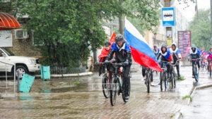 Дождливый патриотический велопробег прошёл в Ленинском округе
