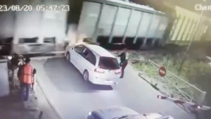 В Амурске неадекватный водитель попытался проскочить между вагонами движущегося поезда