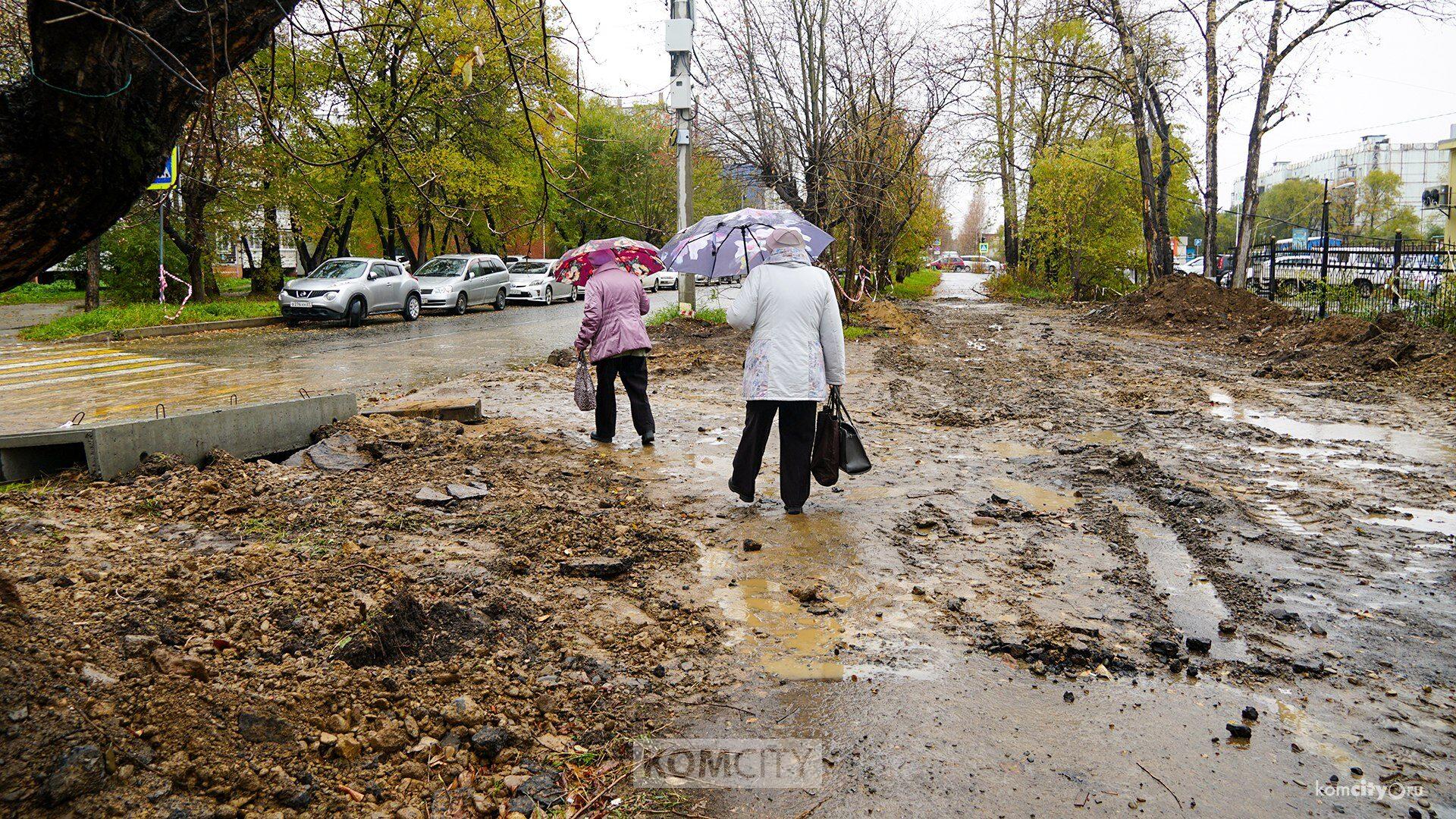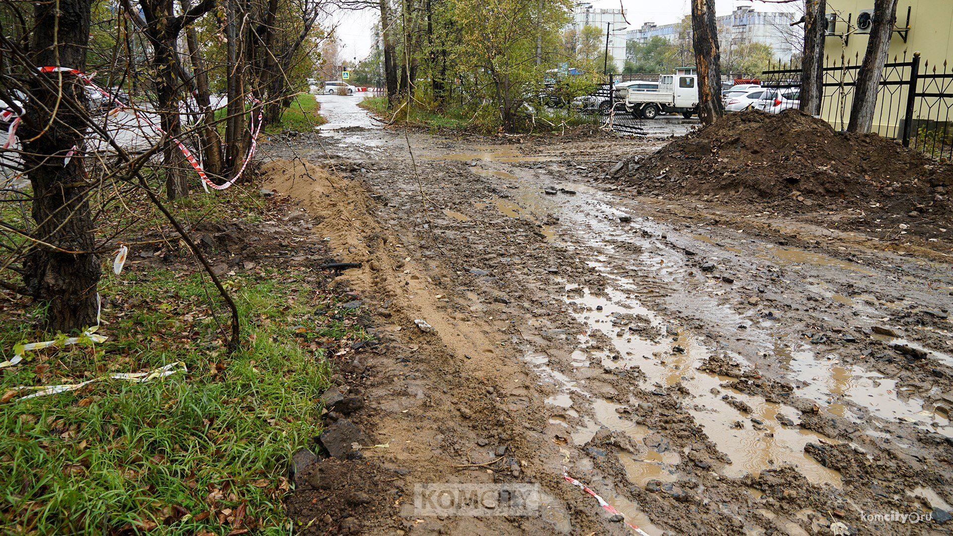 Где-то мы всё это уже видели… Средь бела дня строительная техника без предупреждения перекапывает городскую улицу, блокирует движение, вскрывает асфальт и развозит грязь. А потом ответственного за это безобразие упрашивают восстановить всё как было, даже не наругав для приличия. Именно такая история случилась пару лет назад на «новом Ленина», где тянули сети к объекту печально известного комсомольского бизнесмена. Теперь всё повторяется уже на Дзёмгах — на улице Калинина недалеко от перекрёстка с Лазо. Тоже стройка того самого предпринимателя, тоже тянут сети, тоже ломают асфальт и тоже всё это без согласования с чиновниками. Заодно сносят деревья и корёжат тротуар, превращая его в грязное месиво, где после дождя можно по щиколотку увязнуть в глине.
