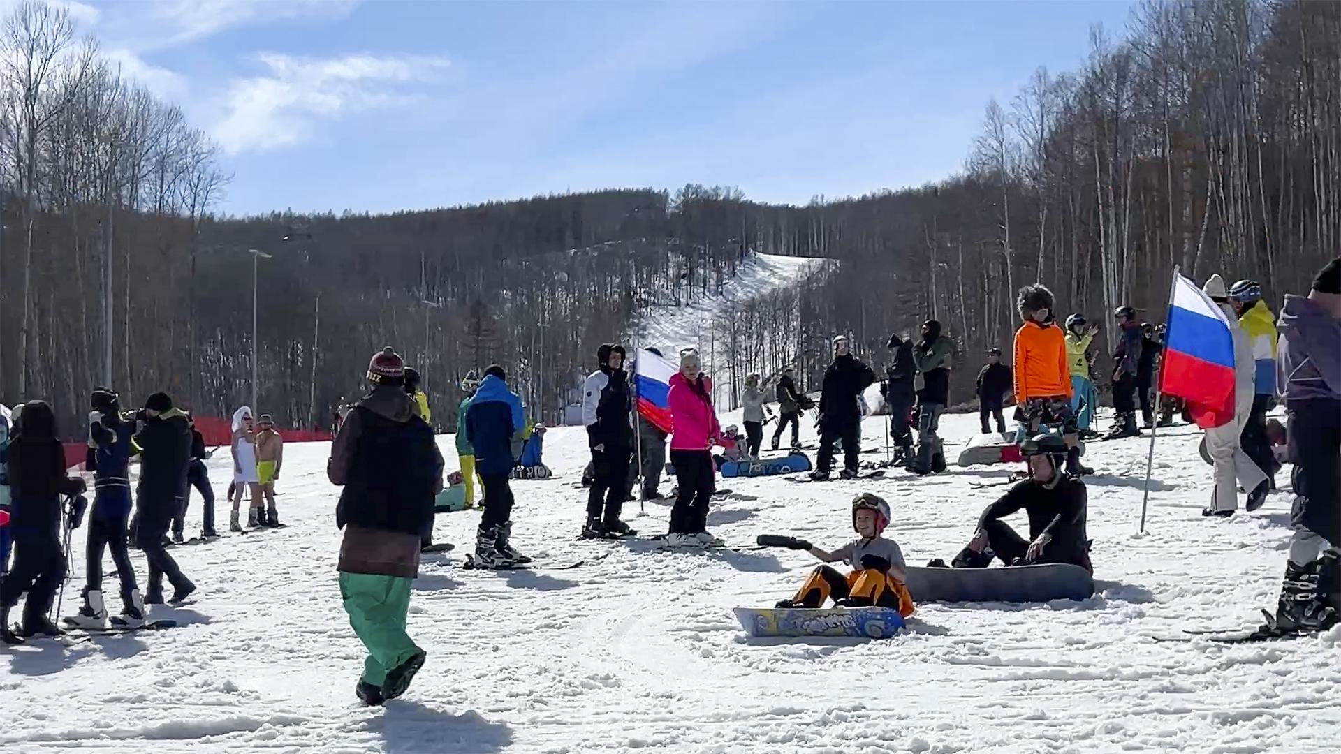 В воскресенье на ГЛК «Холдоми» ярко закрыли зимний сезон. Здесь прошёл традиционный массовый костюмированный спуск. Участие в нём приняли фея, космонавт, Мона Лиза, стюардесса, мужчины с голым торсом, девушка в банном полотенце, Хищник и много других персонажей.