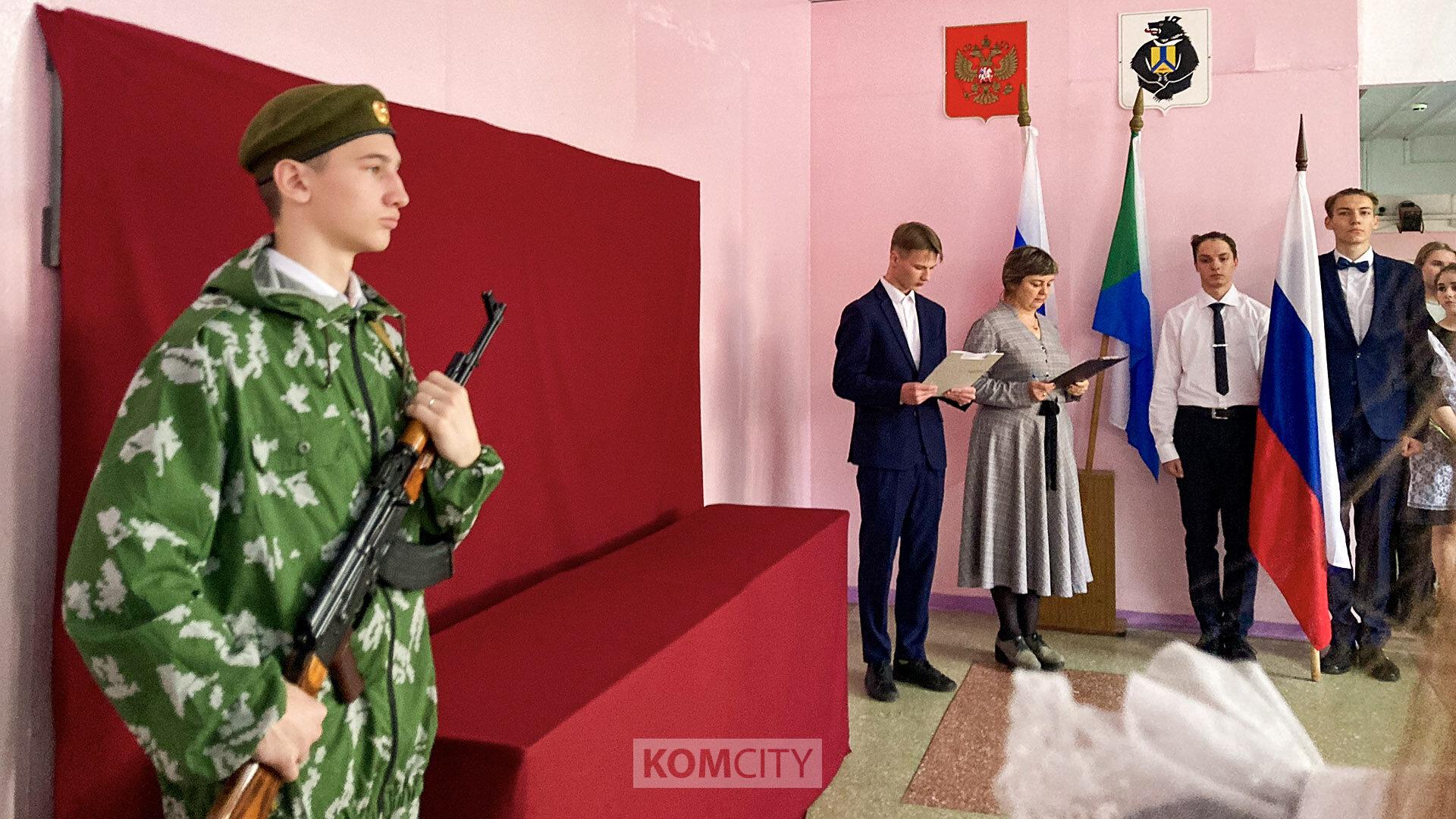 Мемориальные доски бойцам разместилась в холле на первом этаже учреждения. Участие в церемонии приняли родственники и сослуживцы героев, школьники. Дети и взрослые почтили память погибших комсомольчан минутой молчания и возложили цветы к мемориальной доске.
