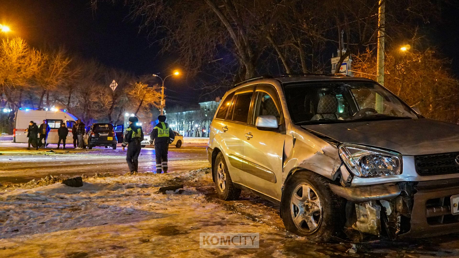В ГАИ по Комсомольску-на-Амуре озвучили подробности вчерашнего ДТП на площади Ленина, где одна из машин чуть в стену дома не влетела, лишь немного до неё не доехав. Видео момента аварии и того, что ей предшествовало, мы уже выкладывали — виновник на Рав-4, двигаясь со стороны Котовского, проехал на два красных подряд и влупился в Рактис, который начал движение на зелёный, после чего улетел на тротуар.